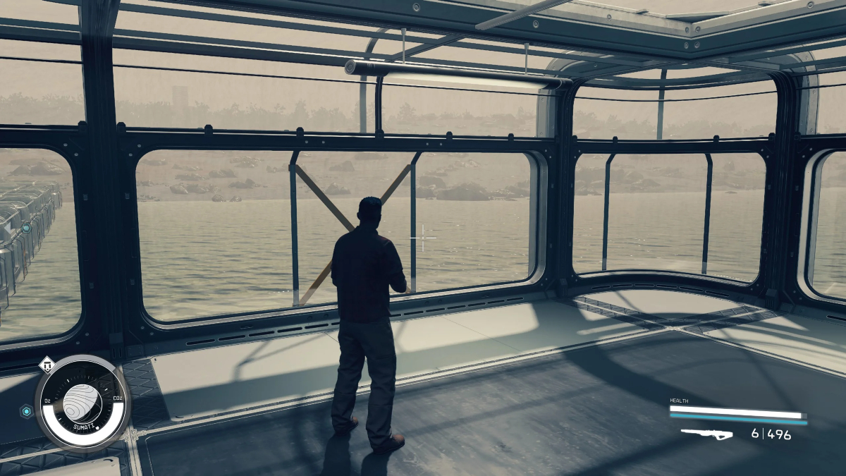 Starfield enthusiast ‘Caliartist’ recently shared various screenshots on Reddit of a long, indoor pier-style hab structure they built out into the water of a ‘Coast’-type biome area, on what looks to be the planet Sumati in the Narion star system. From what can be seen, they started with an Airlock module at the coastline, followed by a standard hab structure that then connected to a long sequence of Hydroponic hab modules, until they pushed it all the way to the edge of the outpost perimeter.